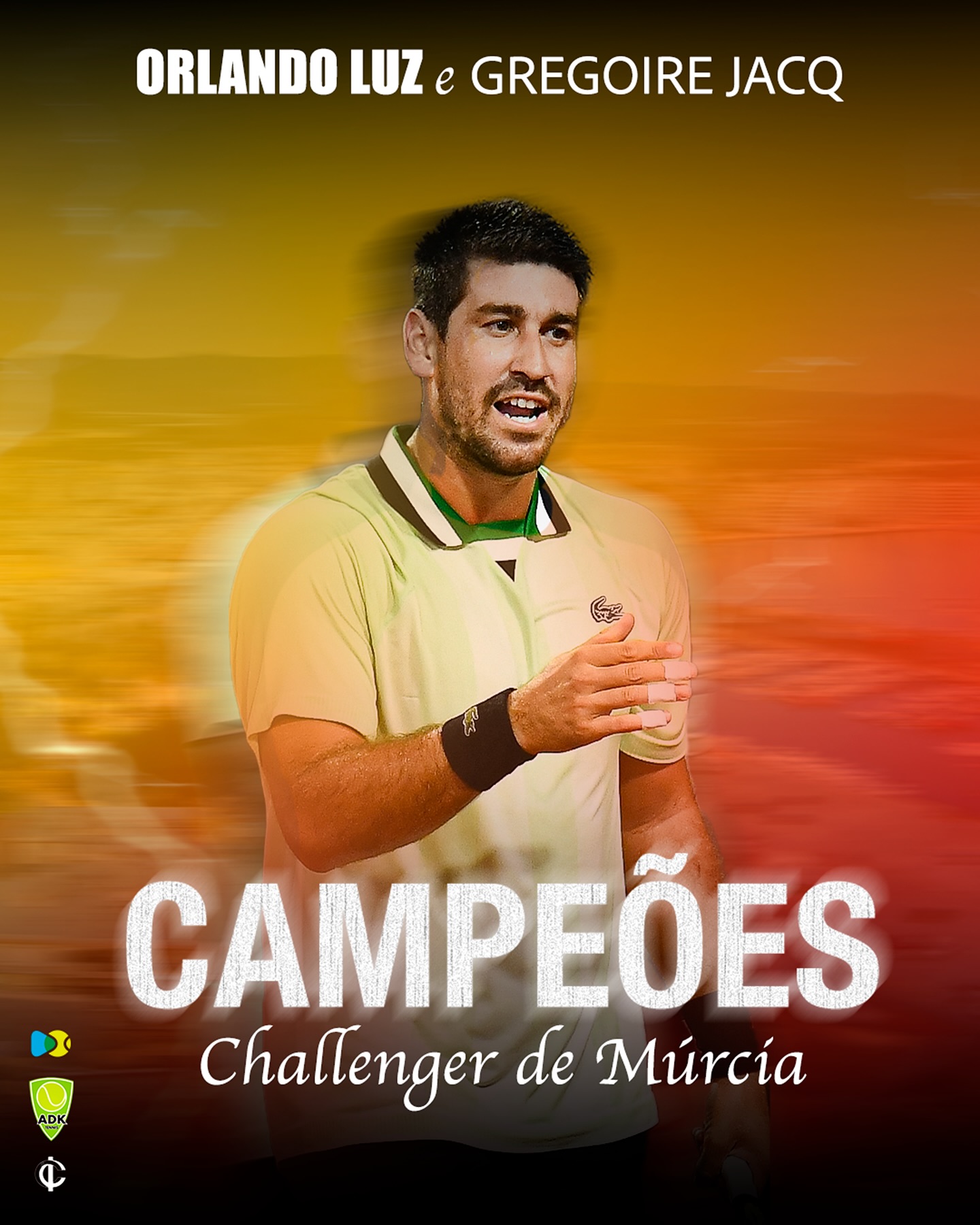 É Campeão! Orlando Luz, atleta da ADK Tennis e Itamirim Clube de Campo, ao lado de Gregoire Jacq, conquistaram nesse sábado o título de duplas no Challenger de Múrcia. Vamosss!!! 🎾🎾
